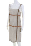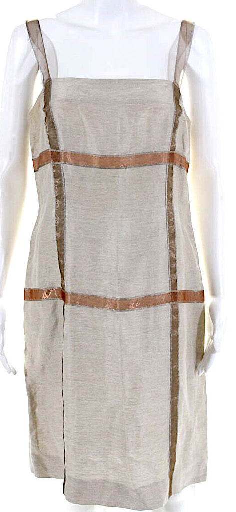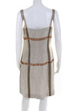 Alberta Ferretti Italy. Beige Windowpane Summer Sleeveless Square Neck Sheath Dress