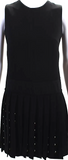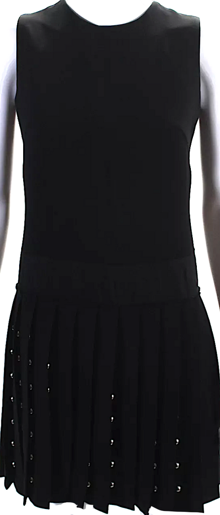 Alexander McQueen UK. McQ. BBlack Studded Crew Neck Pleated Shift Dress