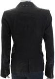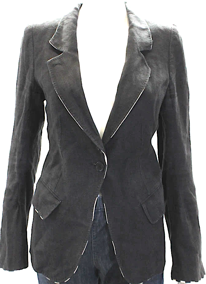 Ann Demeulemeester Belgium. Black Linen Collar Button Up Blazer Jacket