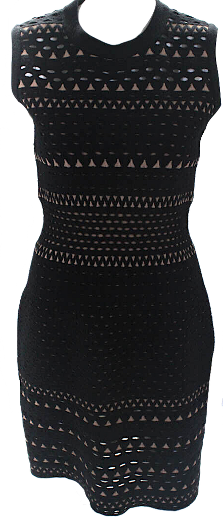 Azzedine Alaia Paris. Vintage Black Knit Wool Cutaway Scoop Neck Sleeveless Sheath Dress
