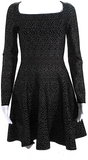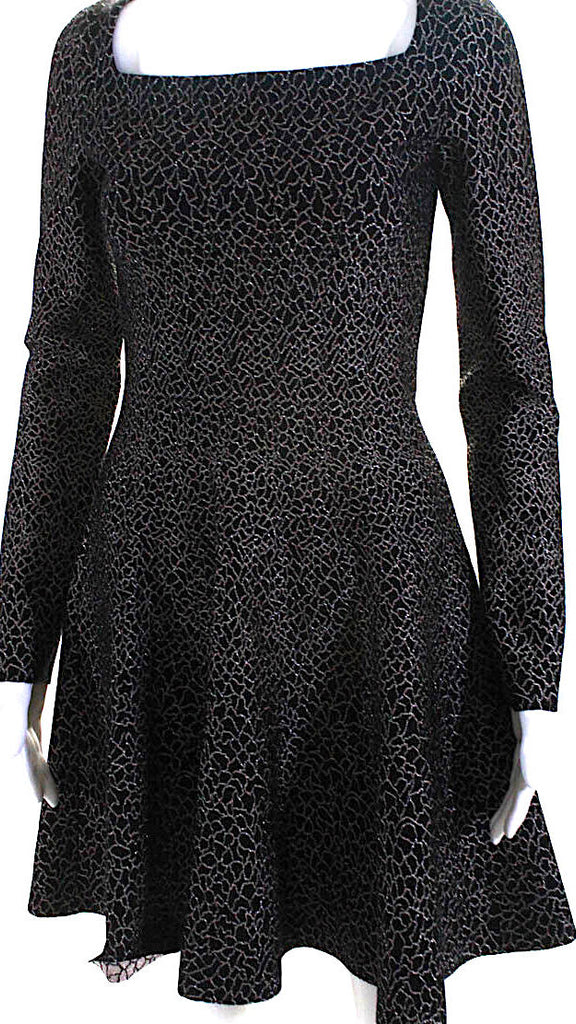 Azzedine Alaia Paris. Vintage Black Metallic Knit Square Neck Mini Flare Dress