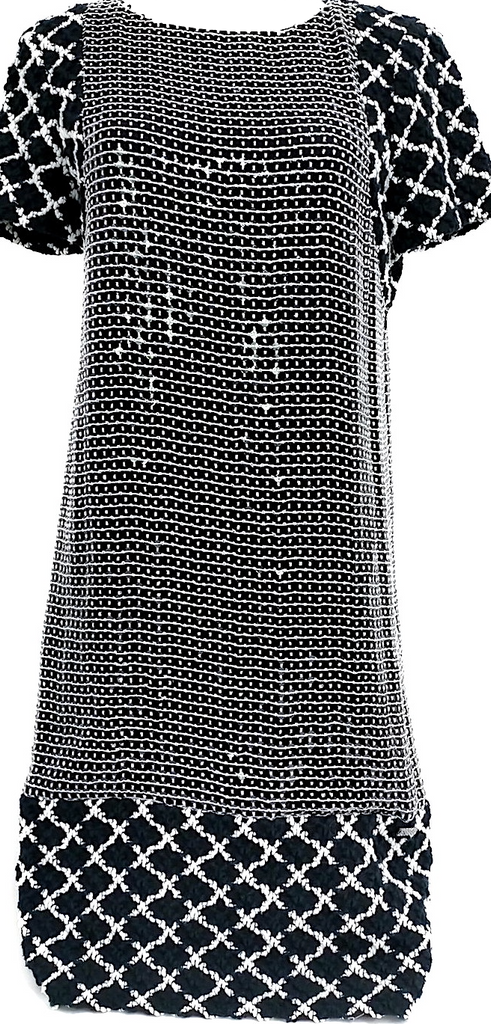 CHANEL PARIS. Black/White Cotton, Poly, Rayon Blend Dress. SZ 40