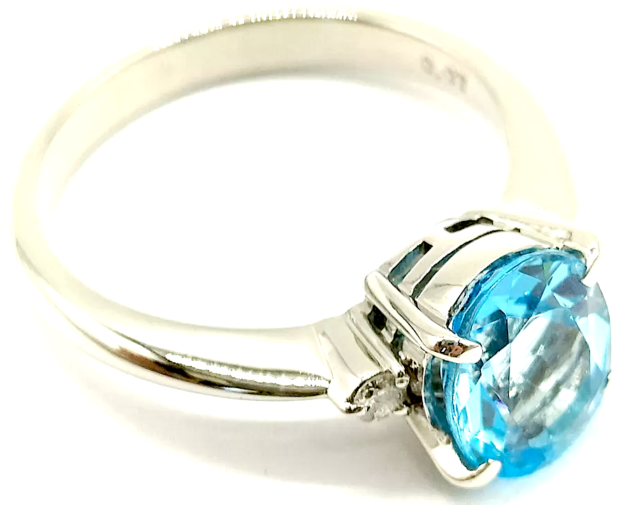 Chesterfields UK. Estate Blue Topaz/Diamonds Ring Set in Platinum (Marked PT900)