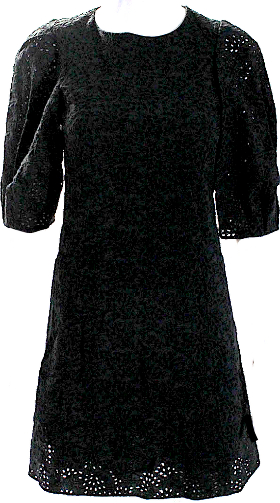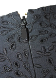 CHLOE PARIS. Black Embroidered Round Neck Short Sleeve Zip Up Dress