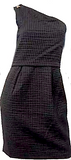 Chloe Paris. Black Striped Cotton-Blend One Shoulder "Little Black Dress"