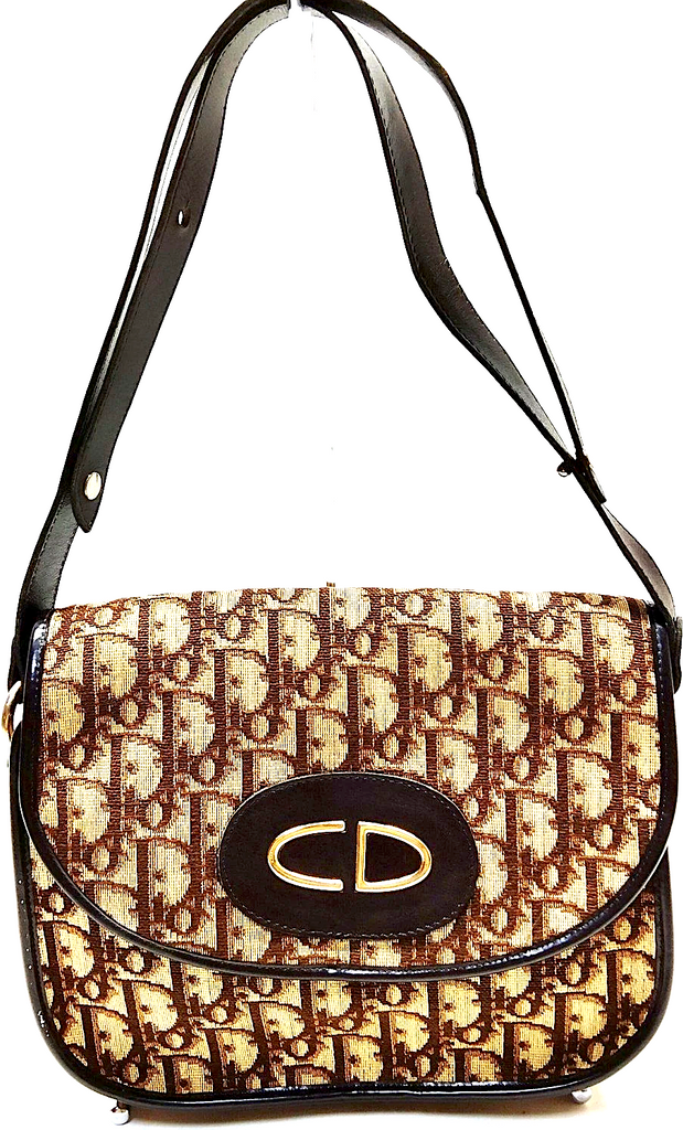Christian Dior Paris. Brown Canvas and Leather Logo Shoulder Bag