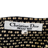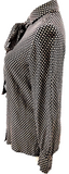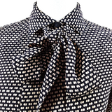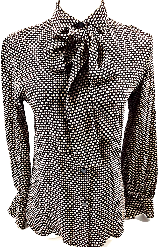 Christian Dior Paris. Dark Brown Geometric Print Silk Bow Blouse