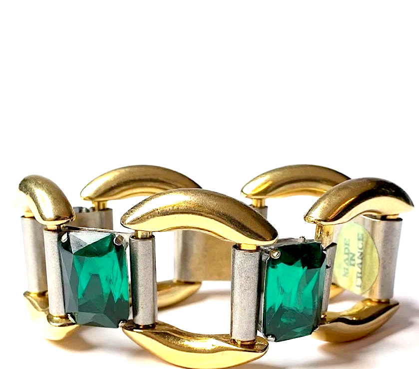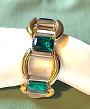 - Material: Goldplated and silverplated metal, Stones: Emerald green rectangular faceted glass