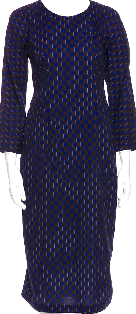 Comme des Garçons Japan. Black, Blue Nylon Printed Midi Length Dress
