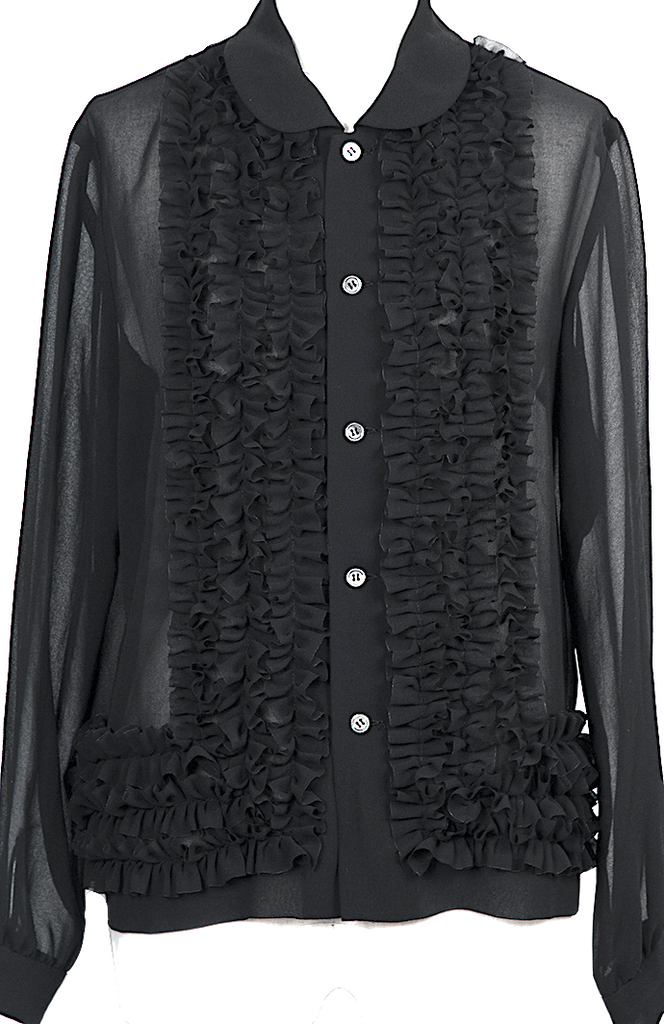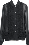 COMME des GARCONS JAPAN. Black Frill Semi-Sheer Chiffon Blouse