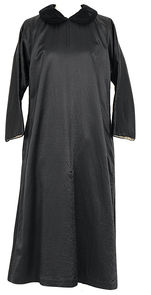 Comme des Garcons Japan. Black Peter Pan Collar Shiny Wool Silk Dress