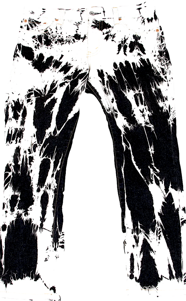 COMME des GARCONS JAPAN. JUNYA WATANABE White, Charcoal, Black Denim Bleach Printed Stretch Slim Pants