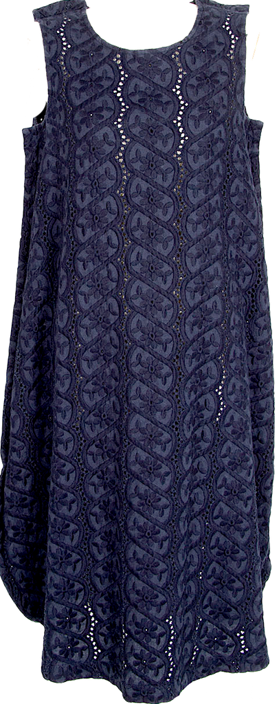 COMME des GARCONS Japan. Navy Color Flower Embroidery Linen Dress