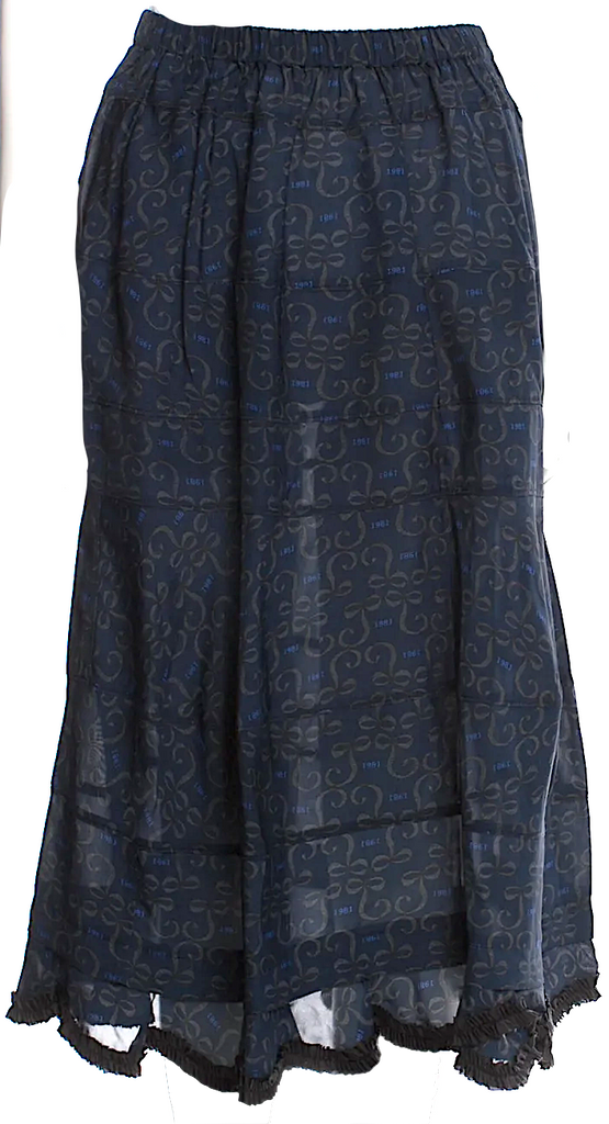 COMME DES GARÇONS Japan. TRICOT. Dark Blue Paisley Print Rayon Flutter Skirt