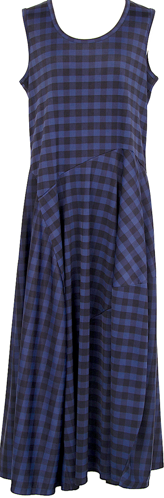COMME des GARCONS JAPAN. TRICOT. Gingham Navy Check Curve Switching Dress
