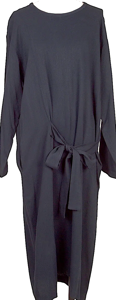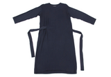 COMME des GARCONS JAPAN. TRICOT. Navy Patterned Textured Rayon Belted Dress