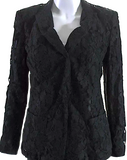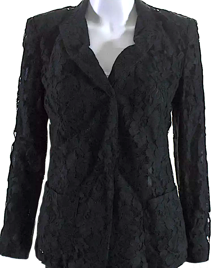 DKNY Black Collared Long Sleeves Lined One Button Lace Jacket