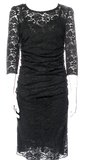 Dolce & Gabbana Italy. Black 3/4 Sleeve Lace Pattern Ruched Dress