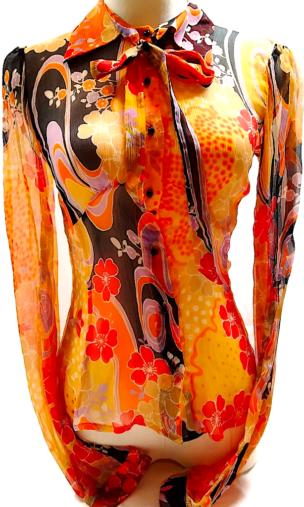 DOLCE&GABBANA ITALY. D & G. Multi-Color Oranges Silk Top