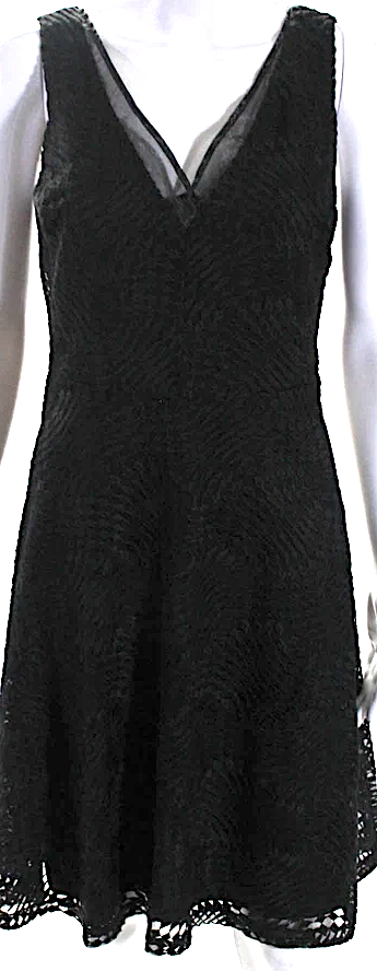 Donna Karan Black Geometric Textured Sleeveless V-Neck Dress