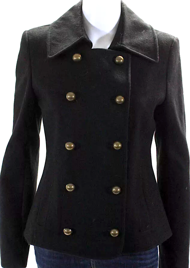 DONNA KARAN NY. DKNY. DKNY Black Wool Shearling Long Sleeve Double Breasted Jacket