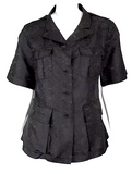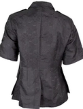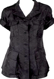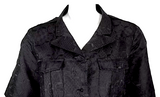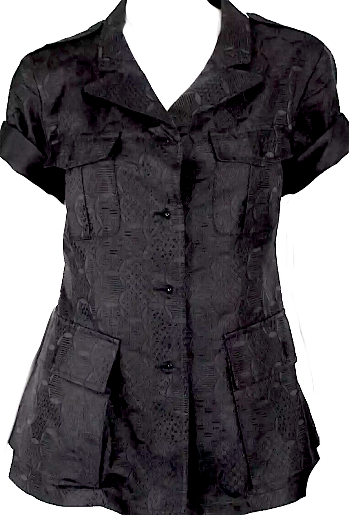 DRIES VAN NOTEN Belgium. Black Silk Jacquard Snap-Front Short Sleeve Jacket