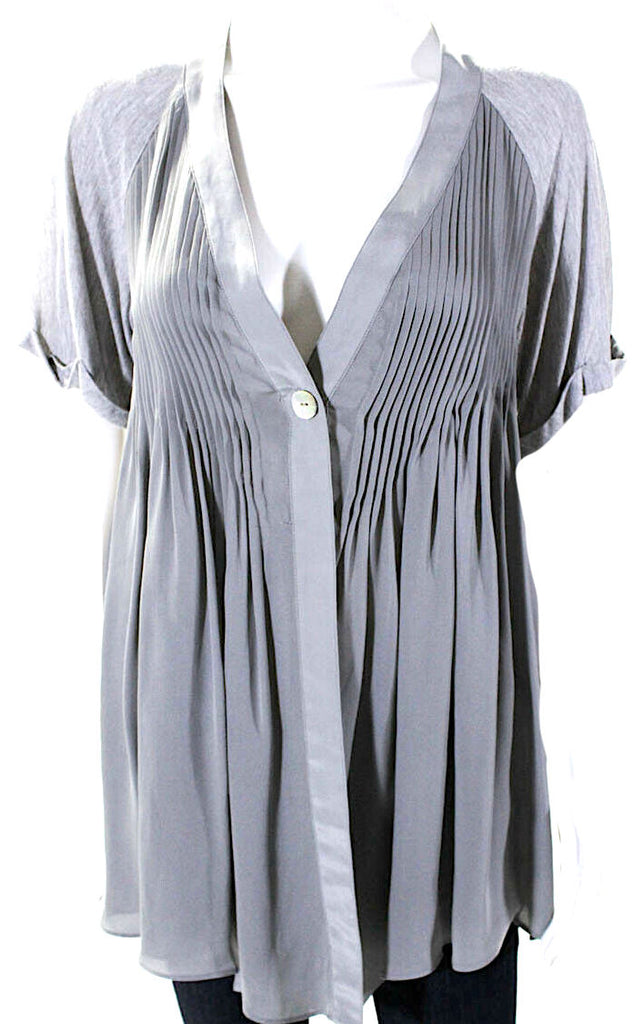 Elizabeth & James Gray Short Sleeve V neck Pleated Blouse
