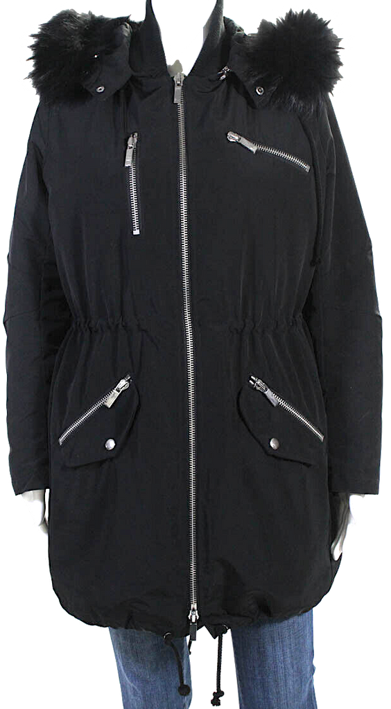 Elizabeth & James NY. (the Row) Black Raccoon Fur Trim Hood Collar Coat