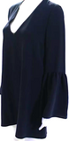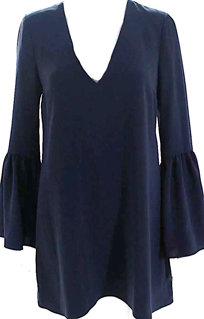 Elizabeth & James NY. (The Row) Navy Acetate V-Neck Darted Flounce Long Sleeve Dress