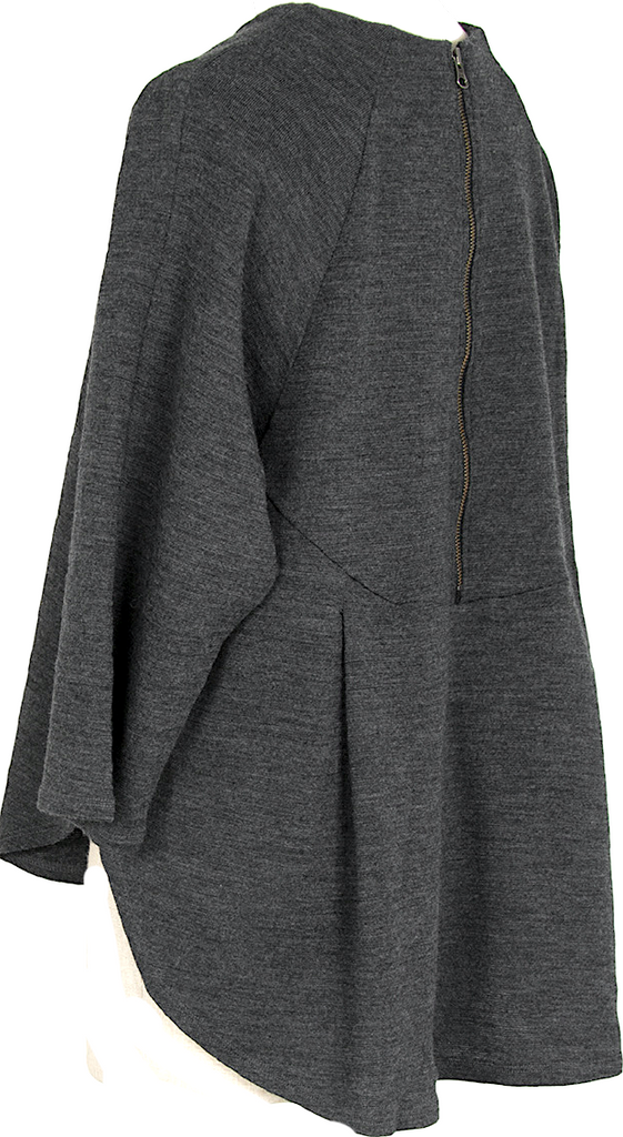FLORENT Japan. Charcoal Wool Back Zip Raglan Asymmetrical Shirt