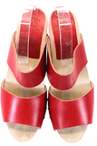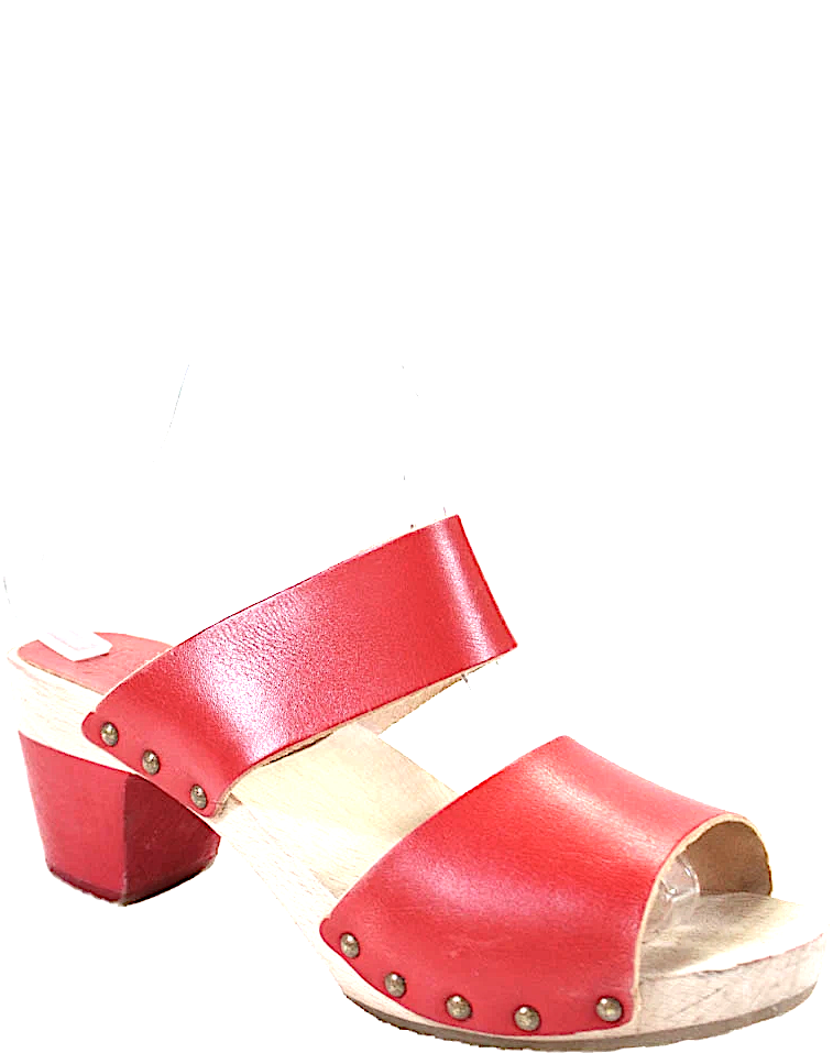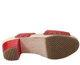 French Theo For Agnes B Paris. Red Leather Block Heel Slide Sandals Size 39.5