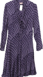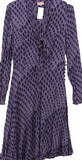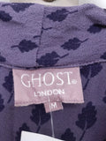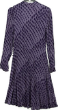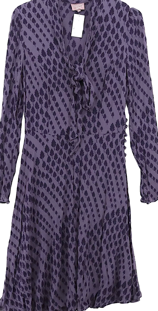 Ghost London UK. Tanya Sarne. Plum 100% Viscose Long Sleeve Midi V-Neck A-Line Midi Dress