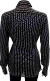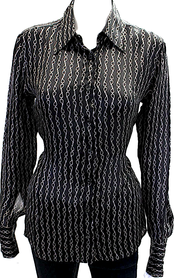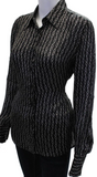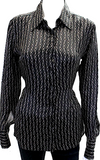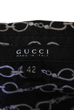 GUCCI ITALY. Black/Grey Silk Horsebit Print Button Down Blouse