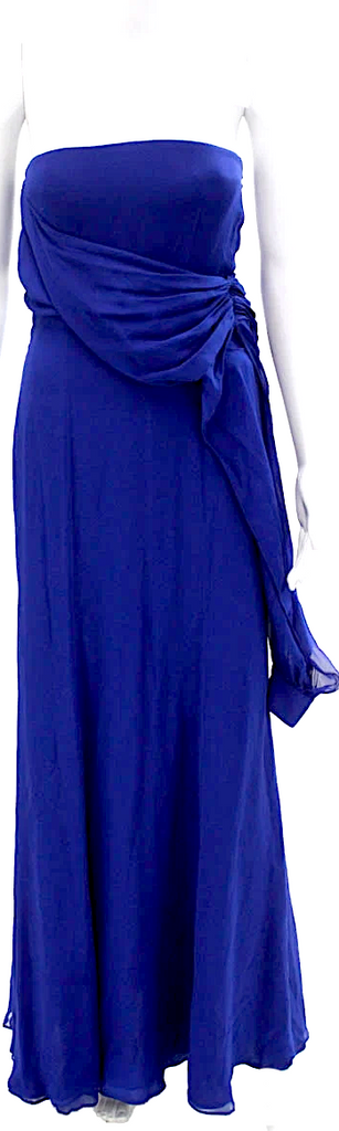 Gucci Italy. Blue Silk Sheer One Shoulder Detail Empire Waist Dress SZ 38IT