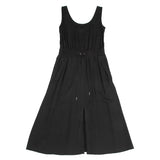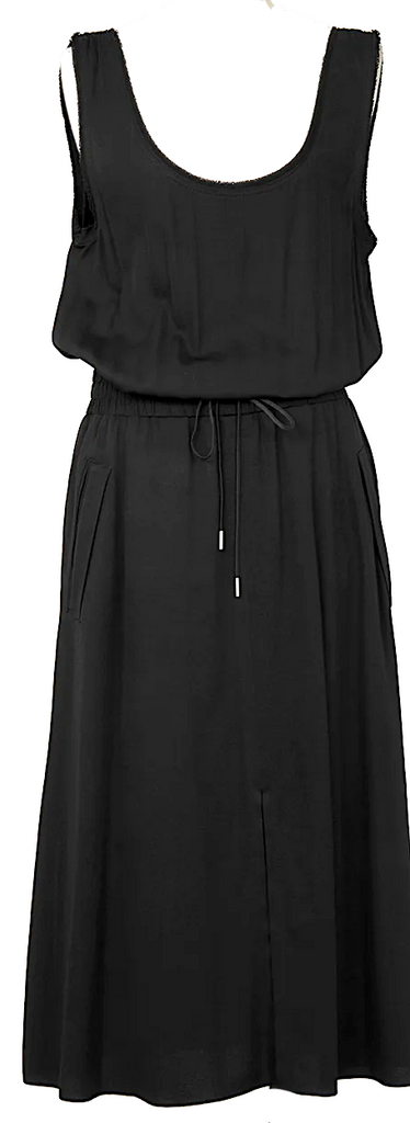 HELMUT LANG Black Rayon Blend Waist Drawcord Sleeveless Dress