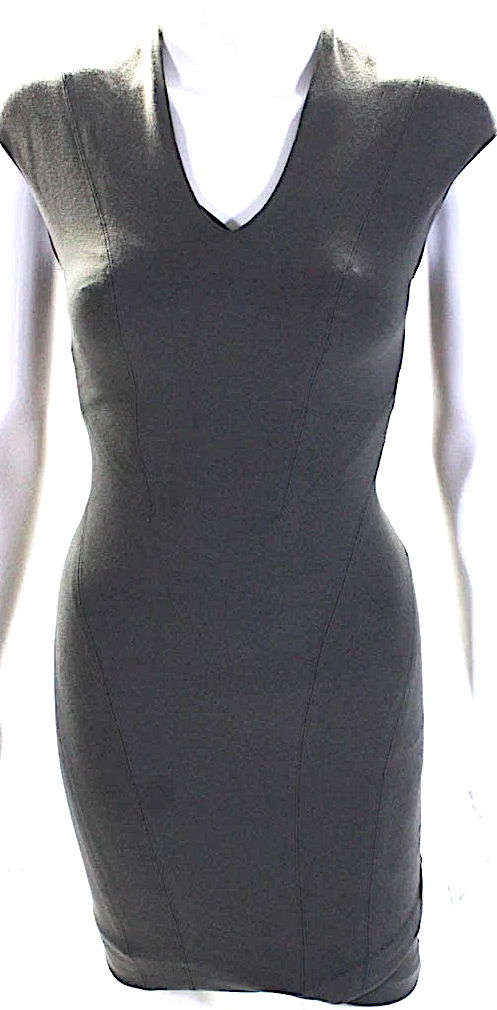 Helmut Lang. Gray Cotton Darted V-Neck Zipped Midi Sheath Dress