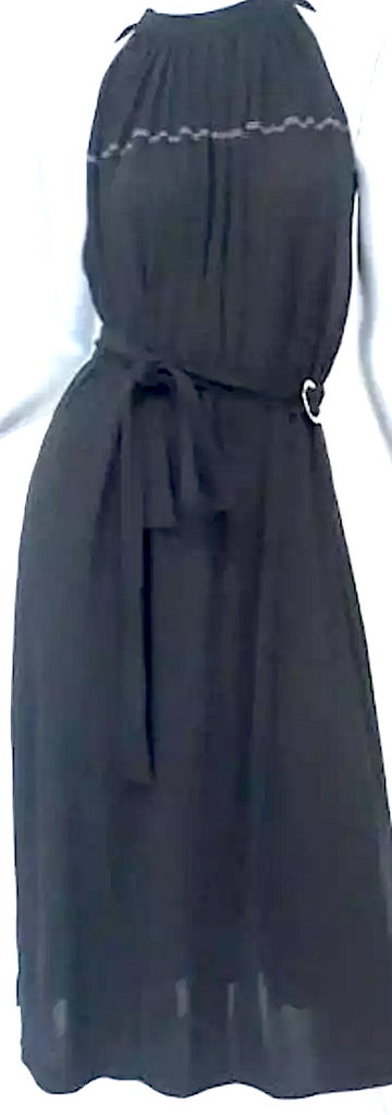 Black Shirred Jersey Size Extra Small Belted Halter Midi Dress