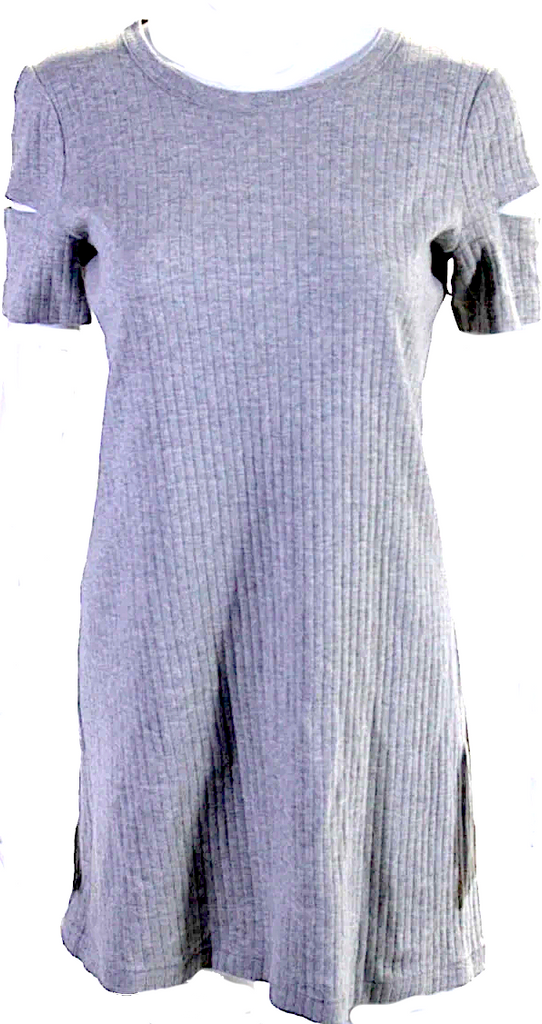 Helmut Lang NY. Gray Cotton Short Sleeve Cut Out Accents Ribbed Knit T-shirt Dress