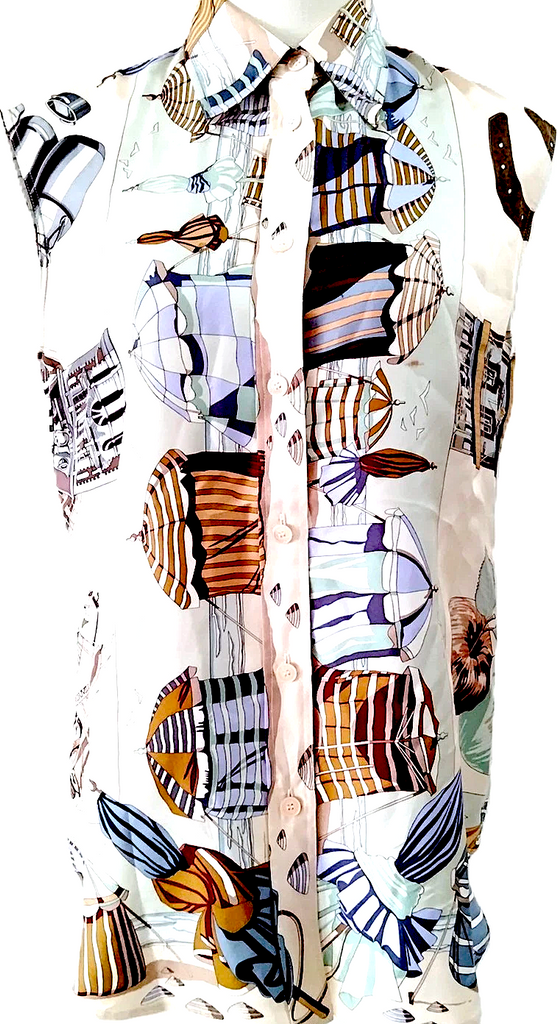 HERMES PARIS. Vintage Sleeveless Print Silk Top