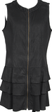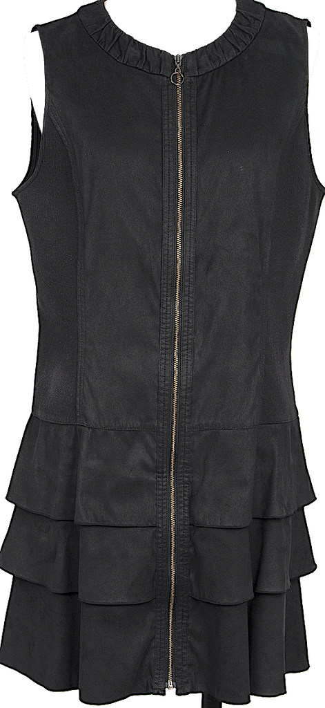 HIROKO KOSHINO HIROKO BIS JAPAN. Black Synthetic Suede Switching Zip Tunic/Mini Dress