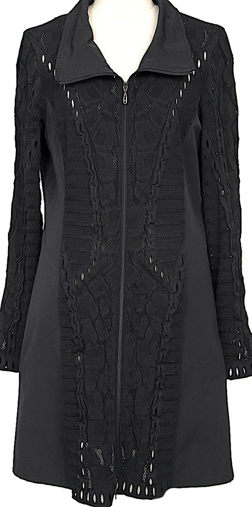 HIROKO KOSHINO JAPAN. HIROKO BIS. Black Jacquard Mesh Zip Jacket