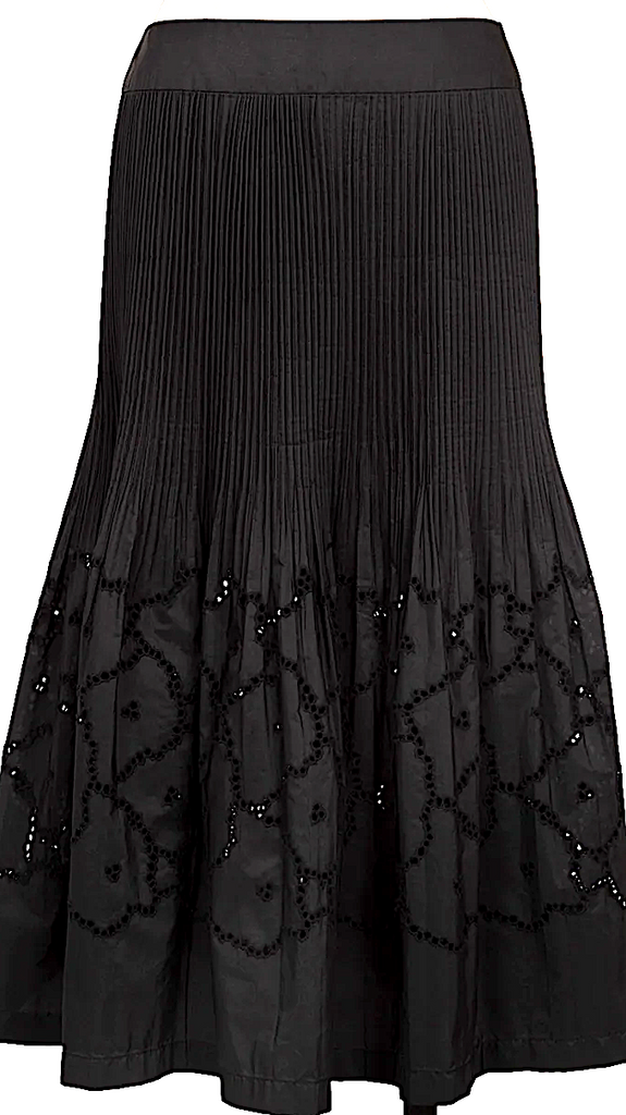 HIROKO KOSHINO PREMIER Black Pleated Hem Lace Skirt