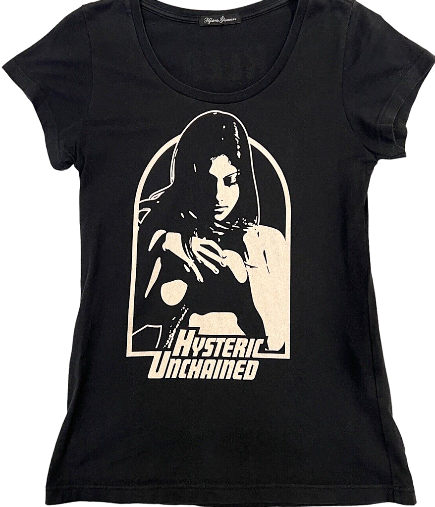 Hysteric Glamour Japan. Black “Unchained” Portrait T-Shirt Printed Both Sides