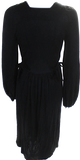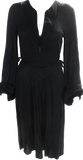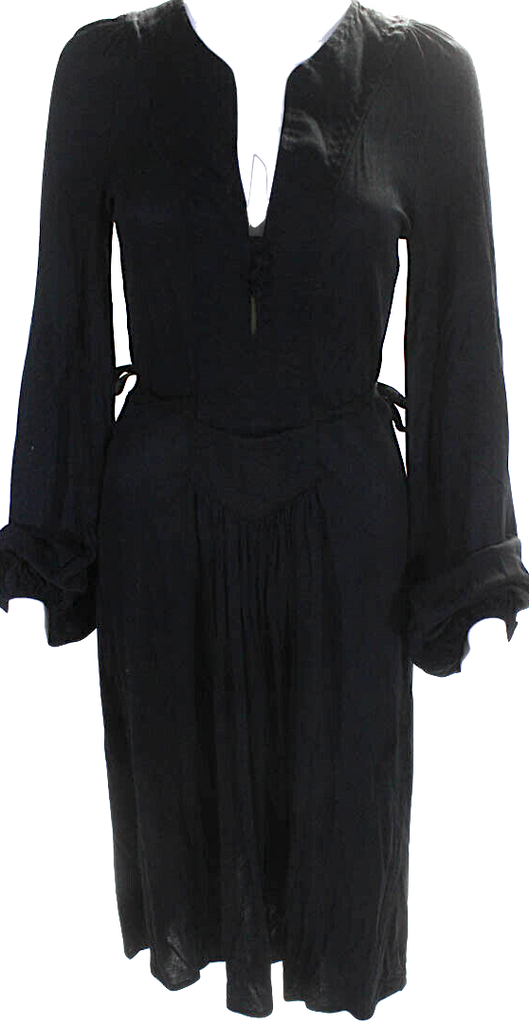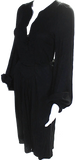 Isabel Marant Paris. Black Long Sleeve V Neck Jersey Tie Waist Midi Dress