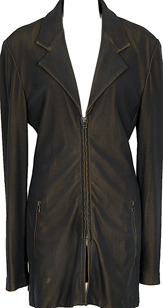 ISSEY MIYAKE Japan. Black/Khaki-Green Tinted Jersey Zip Jacket