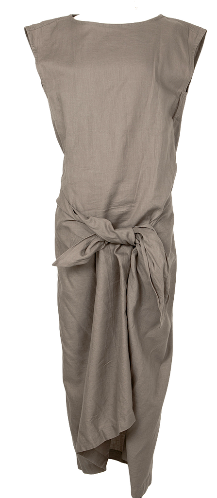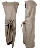 Issey Miyake Japan. Plantation Line. Grey Cotton Linen Sleeveless Wrap Dress