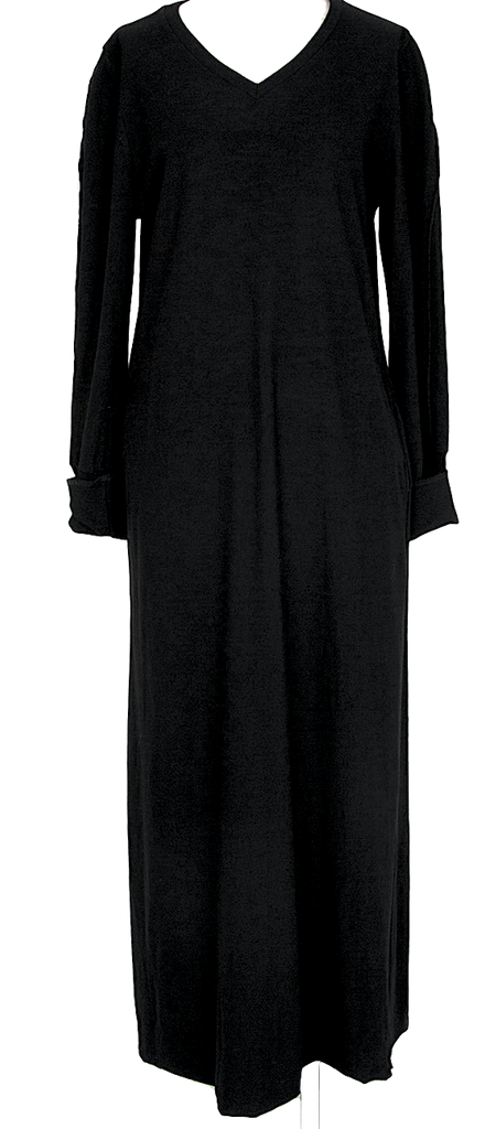 Issey Miyake Japan. "Zucca Line" Black V-Neck Knit Wool Dress