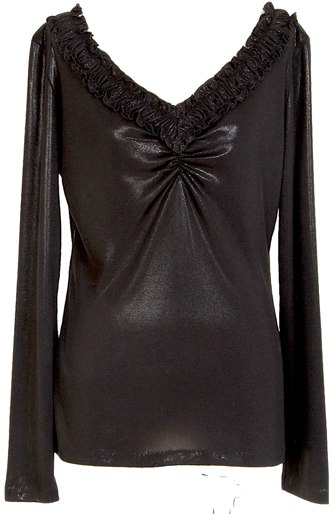 JEAN PAUL GAULTIER PARIS. Black Gather Neck Shiny Top