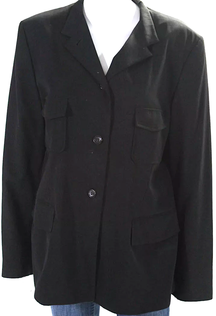 Jil Sander Black Wool Collared Buttoned Long Sleeve Blouse Top