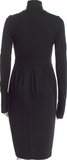 JIL SANDER. Black Wool Pleated Accents Long Sleeve BodyCon Dress